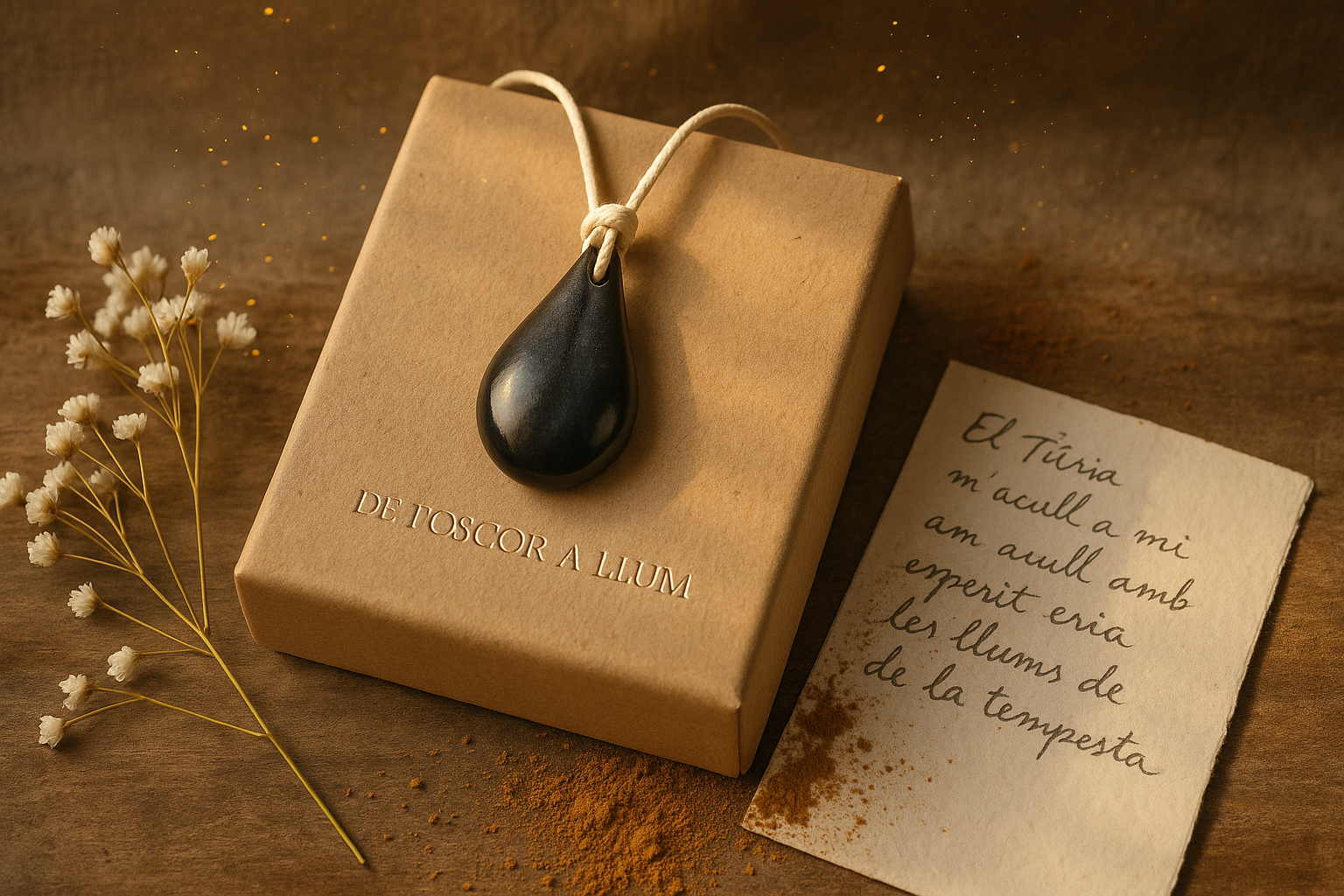 Negro como la noche más densa, este colgante representa el origen. La pausa, el recogimiento. Es la sombra que precede a la claridad, el lugar donde se gesta la transformación. Su brillo tenue recuerda que incluso en la oscuridad hay luz —si se sabe mirar.